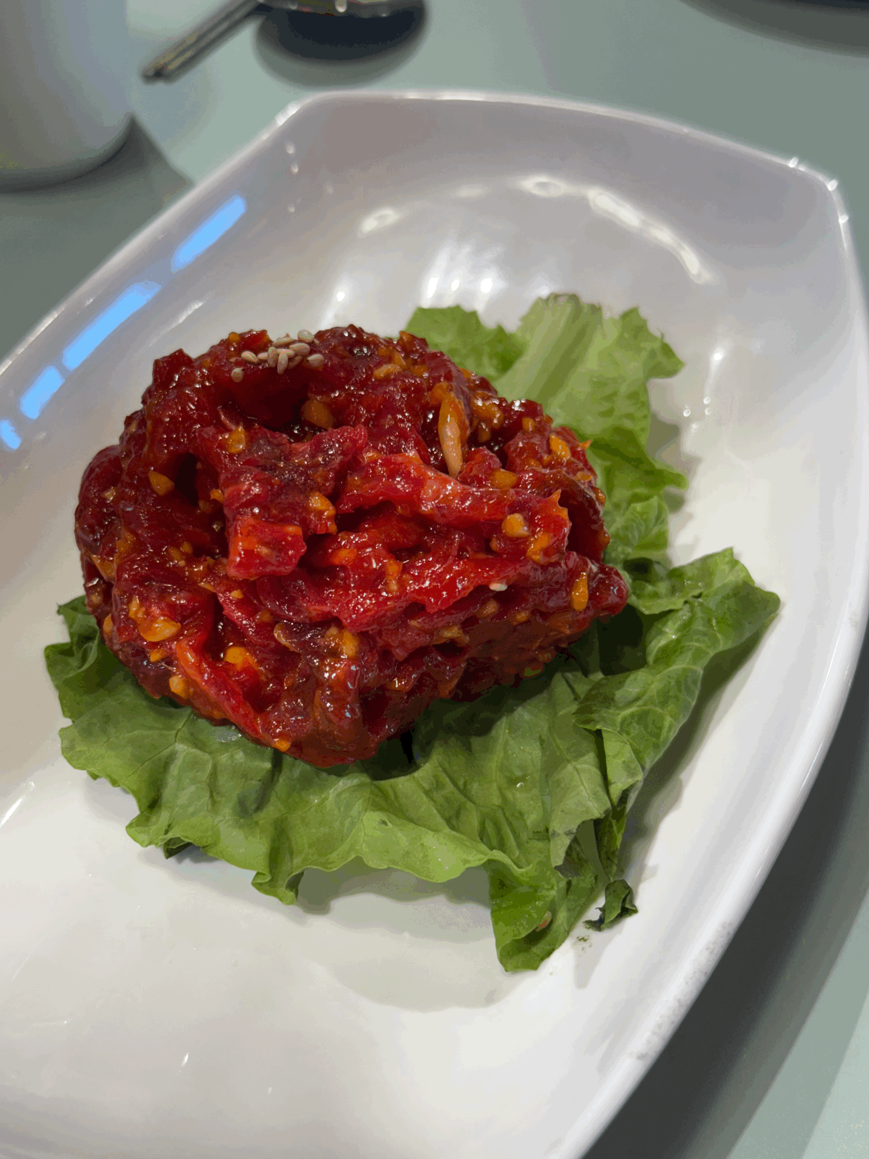 - 육회: 고추장 양념이 조금 강하지만 신선하고 냉장육이라 질감이 좋음